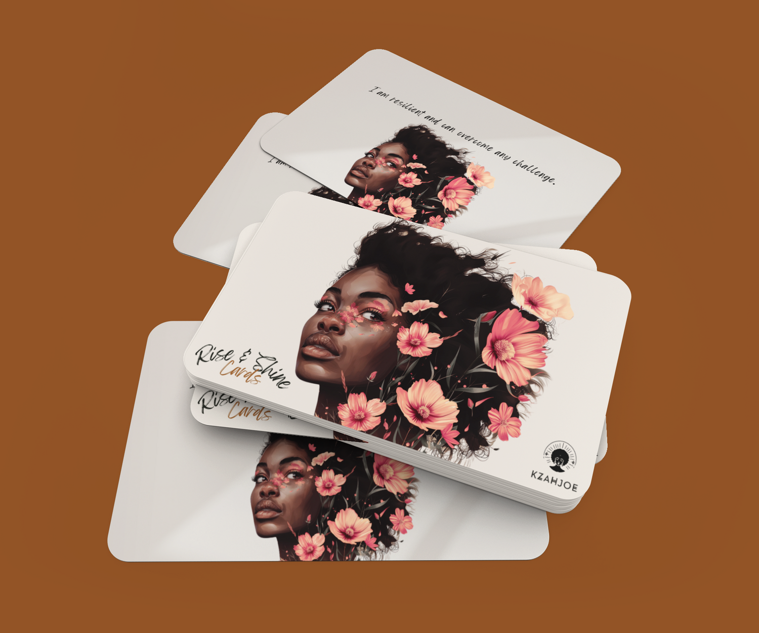 Discover Rise & Shine: Empowerment Cards – 25 daily affirmations crafted to uplift and inspire Black women. Beautiful designs and an elegant holder make it easy to embrace positivity and empowerment every day!