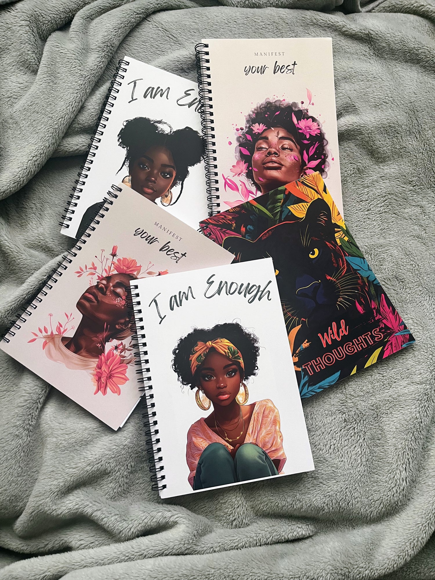 Manifest your dreams and nurture your well-being with the Manifest Your Best - Bloom Notebook. Featuring a beautiful profile of a Black woman surrounded by blooming flowers, this notebook is your daily reminder to prioritize self-care and focus on your growth. Whether you’re journaling, reflecting, or jotting down ideas, this spiral-bound notebook offers a calming space to reconnect with yourself and express your creativity. Perfect for everyday use or as a thoughtful gift for someone embracing their self-discovery journey.